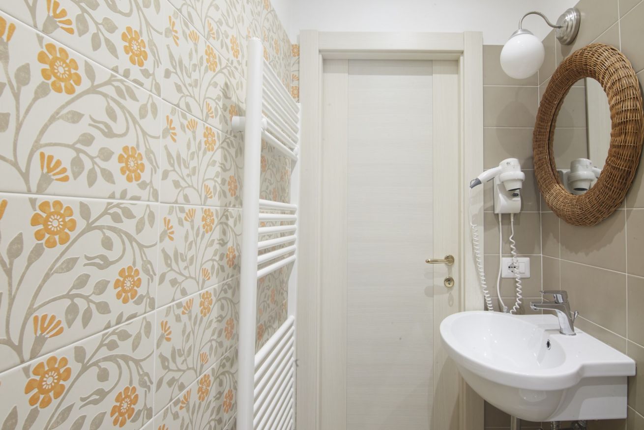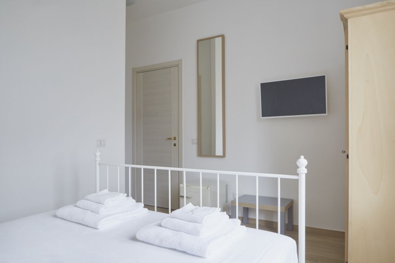 Camera doppia con bagno privato e vista mare. Presente un frigo bar, biancheria e set cortesia omaggio.